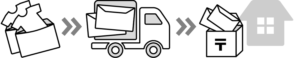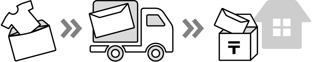 ◎ Tシャツ1枚を厚紙封筒に入れて配送、郵便受けに投函いたします。
